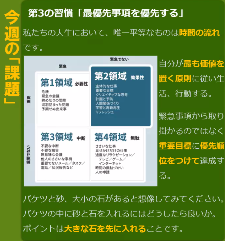 11月第3週は7つの習慣からの課題です。