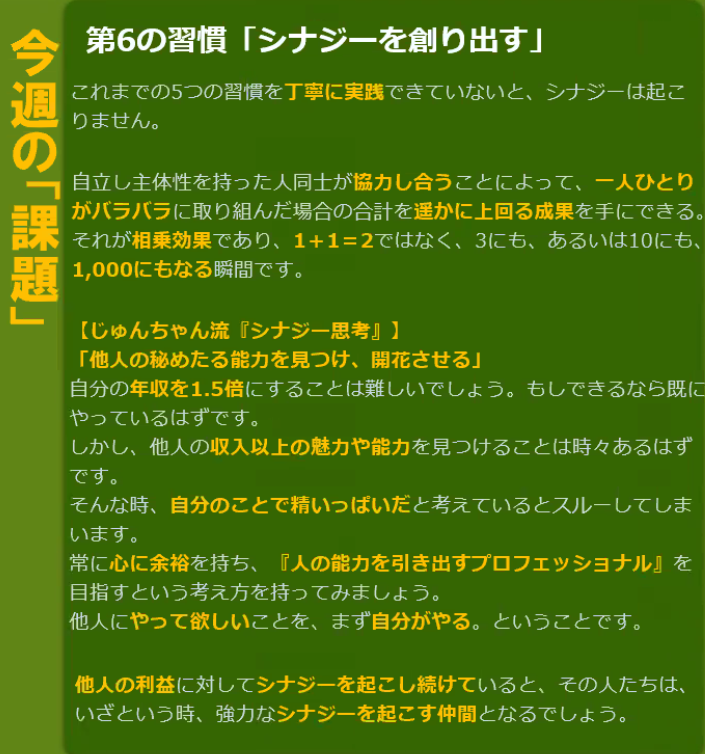 今日は「 シナジーを創り出す 」 を学びました。