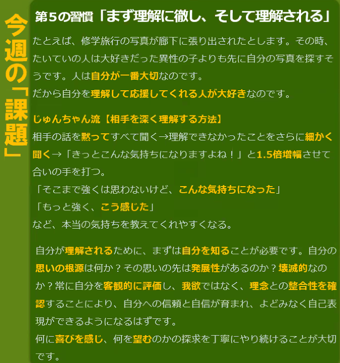 今日は「 まず理解に徹し、そして理解される 」 を学びました。